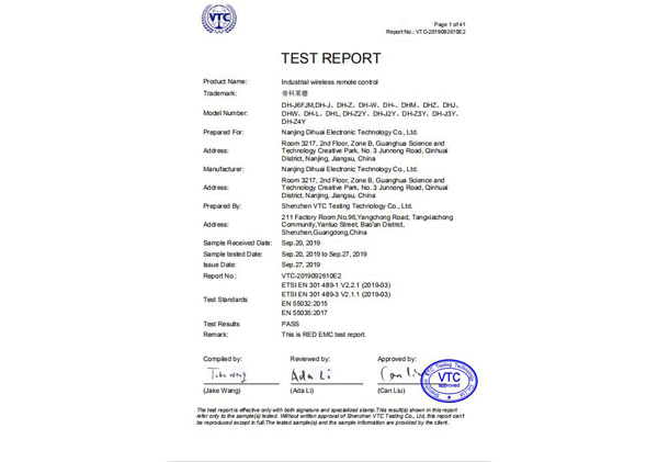 南京帝淮电子科技有限公司,国内工业遥控器行业领军企业,自主研发、定制、非标设计各类工业级无线遥控器、工业级有线控制器、智能化自主算法逻辑的本地控制器等系列产品。已经申请及正在申请的技术专利、外观专利有近三十项左右,并通过了CE欧盟认证、国家级试验检验报告、EMC电磁兼容认证等。